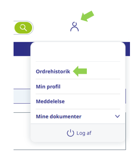 Via dit Brugermenu finder du Ordrehistorik.
