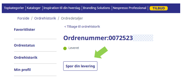 Klik på ordren og vælg Spor din levering og se, hvor din levering befinder sig.