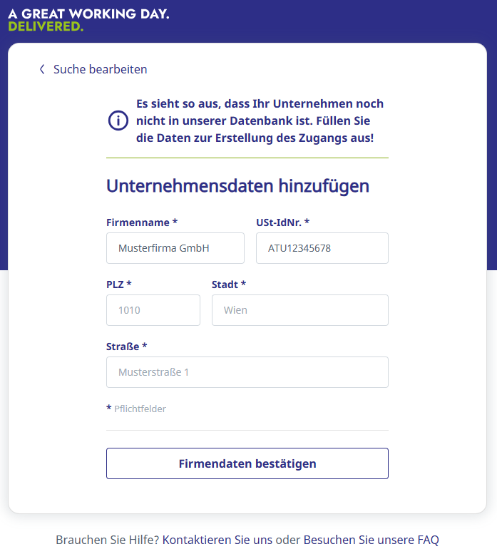 Wenn Sie alles eingegeben haben, wählen Sie Unternehmensdaten bestätigen: