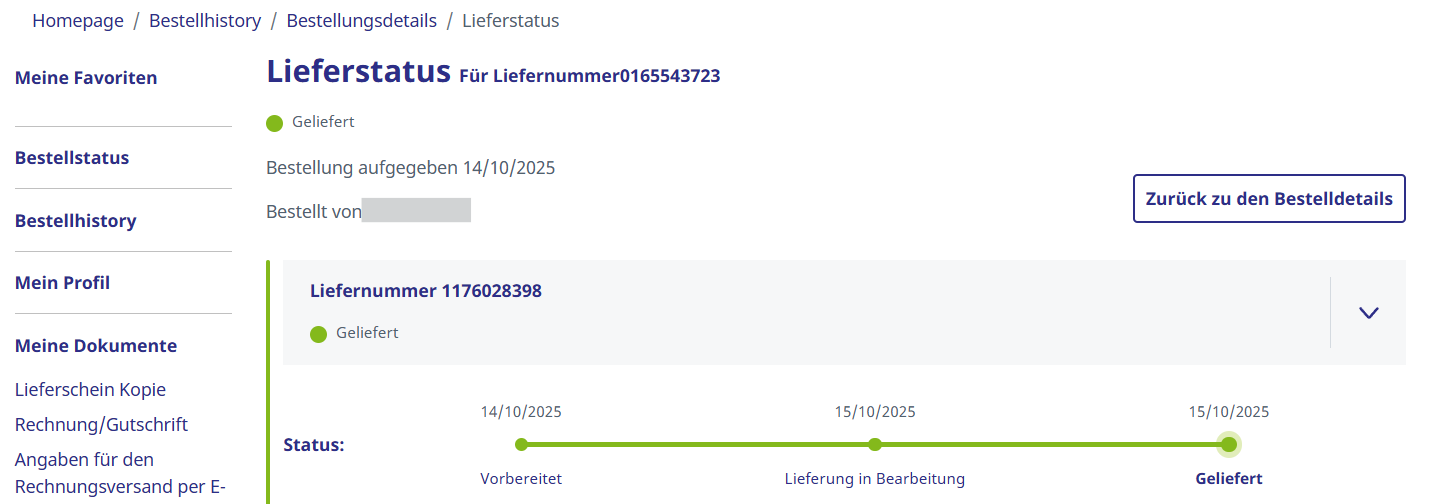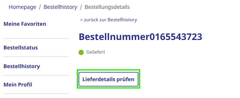 Auf der Bestellübersicht klicken Sie bitte auf Lieferdetails prüfen.