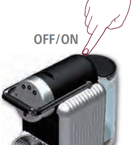 - Press and hold the Ristretto button and switch the machine to "ON". The Ristretto button will light up red.