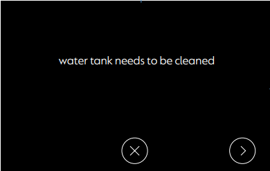 When a machine is connected to the direct water connection (DWC-IN), the water tank is not necessarily monitored on a daily basis. For this reason, your machine will display a blue cleaning alert every 30 calendar days.