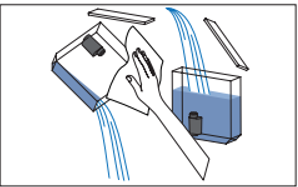 Remove the water tank lid. Empty the contents and clean with a cloth, rinsing with potable water.