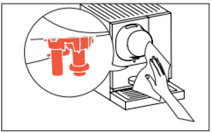 Rinse the coffee outlet cover with fresh potable water and dry it.