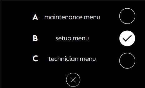 > B setup menu.