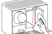 Clean the milk aspiration pipe and the milk tank bay with a fresh and clean wet towel.