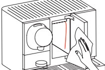 Clean the coffee and the milk outlets with a disposable tissue or a paper towel.