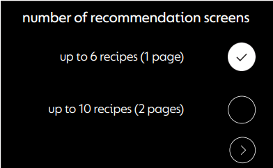Up to 6 recipes will be shown on a single recommendations screen. For 7 up to 10 recipes, the recipes will be shown on two recommendation screens.