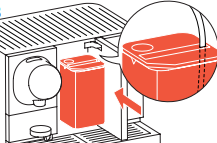 Fill the water tank completely with fresh drinking water. Insert the water tank back into the machine.