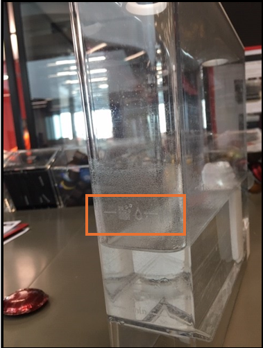 If the pump on your Nespresso Momento machine is overheating during descaling, please check that the level of descaling or rinsing water is not exceeding the indicated level: