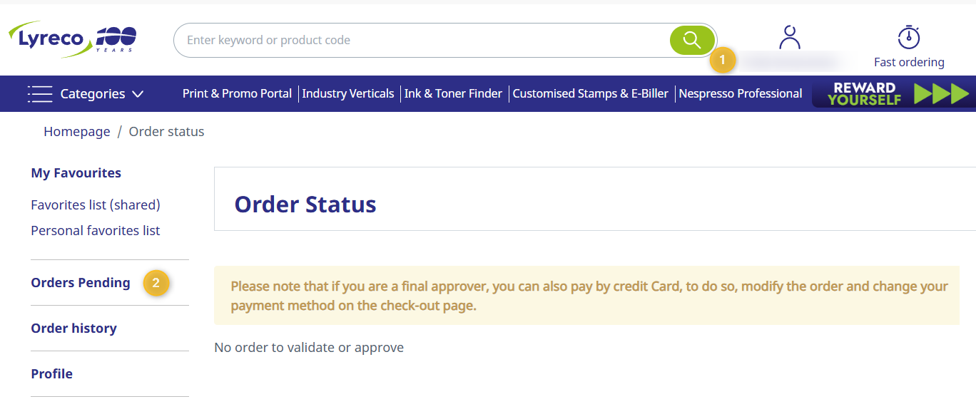 Your organisation may require orders to be approved before shipping. If so, you'll see your order flagged as pending in your Lyreco Webshop account: