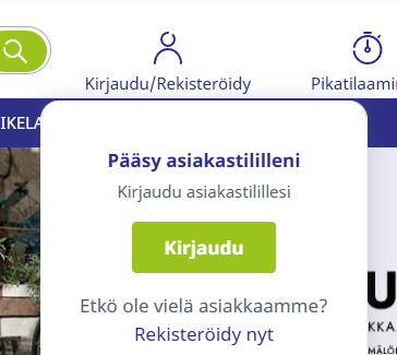 Voit avata asiakastilin helposti rekisteröitymällä verkkokaupassamme. Jos olet jo asiakkaamme ja tarvitset verkkokaupan tunnukset, katso Miten saan lisättyä uuden verkkokaupan käyttäjän?