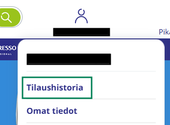 Verkkokaupan "Tilaushistoria"-osiosta löydät tietoja odottavista tilauksistasi sekä yksityiskohtaiset tiedot kaikista viimeisten 12 kuukauden aikana tehdyistä tilauksista.