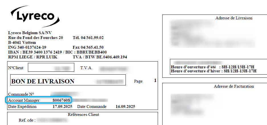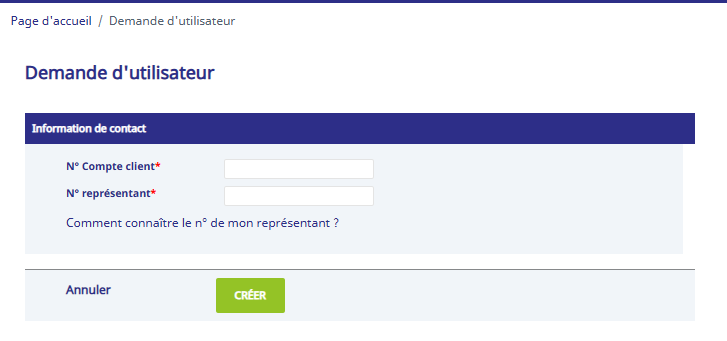 Saisissez votre numéro de compte client ainsi que le numéro de votre représentant commercial (disponible sur votre bon de livraison - nr 8006 suivi de 4 chiffres).