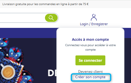 En haut à droite, placez votre curseur sur Login/Enregistrer puis cliquez sur Créer son compte.