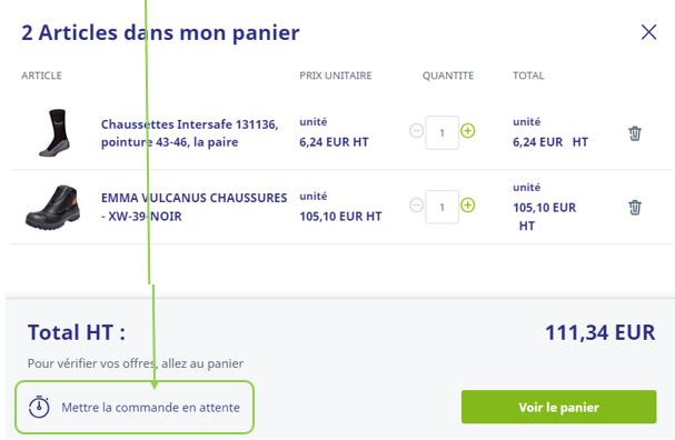 Cliquez en bas à gauche sur le lien Mettre la commande en attente ou sur le lien du même nom en haut du panier d'achat.