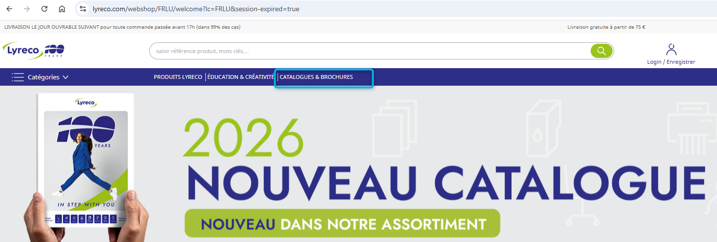 Vous pouvez trouver des copies en ligne de nos catalogues et folders en cliquant sur Catalogues & Brochures ou via ce lien: https://marketing.lyreco.lu/