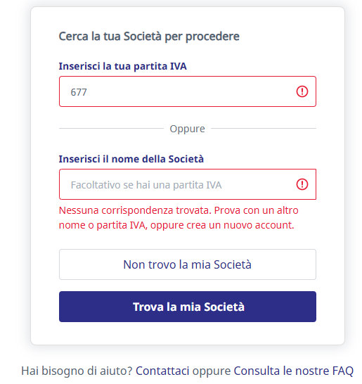 Trova la tua azienda inserendo il numero di partita IVA o la ragione sociale.