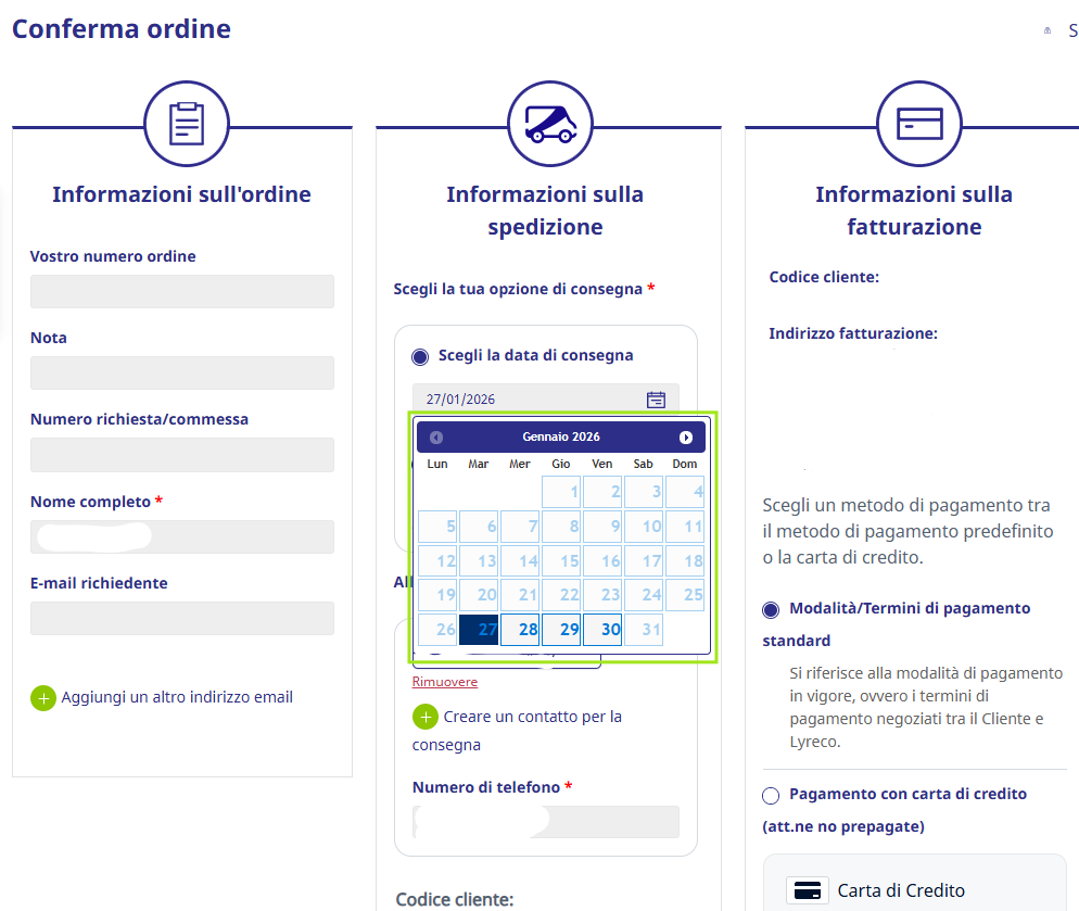 Posso effettuare un ordine e selezionare una data di consegna preferita?