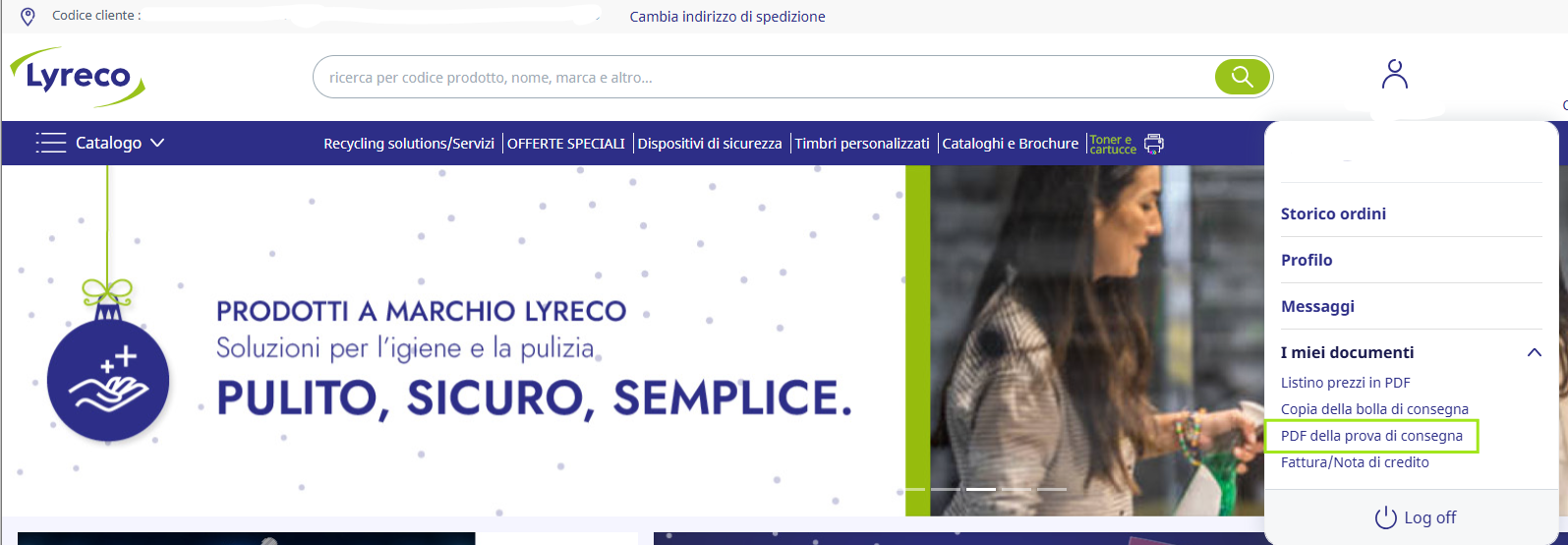 Se la consegna è stata effettuata dai nostri autisti Lyreco, puoi richiedere la prova di consegna tramite il tuo account Lyreco. Segui questi passaggi dopo aver effettuato l'accesso: