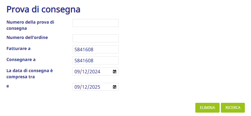 Cerca il documento in base al numero di prova di consegna, al numero d'ordine o all'intervallo di date.