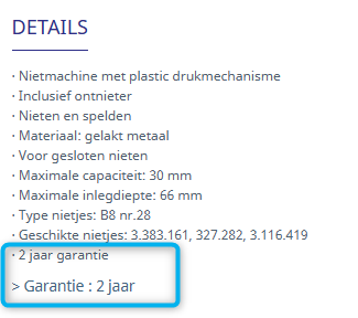 U kunt ook al onze productgaranties raadplegen in de productdetails: