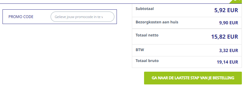 Deze belasting wordt toegevoegd aan het totaalbedrag (incl. btw) in het besteloverzicht bij het bevestigen van uw winkelwagentje.