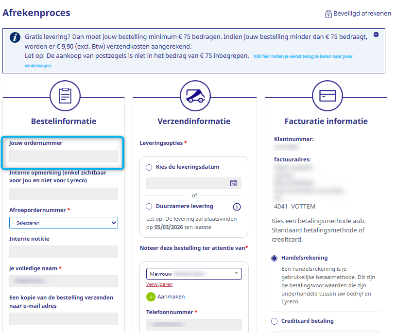 Bij het afrekenen is er een verplicht veld met "Jouw ordernummer". Wat moet ik daar invullen?