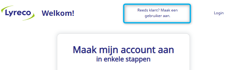 Klik op "Reeds klant? Maak een gebruiker aan".