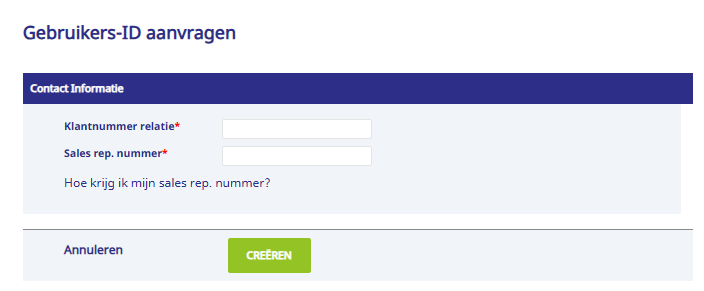 Vul uw klantnummer in en het Sales rep. nummer (= account manager te vinden op uw leveringsbon – nr 8010 gevolgd door 4 cijfers).