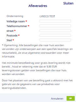 Indien u uitzonderlijk wenst dat uw bestelling naar een ander adres wordt verzonden, heeft u de mogelijkheid om uw bestelling naar een thuisadres te laten leveren.