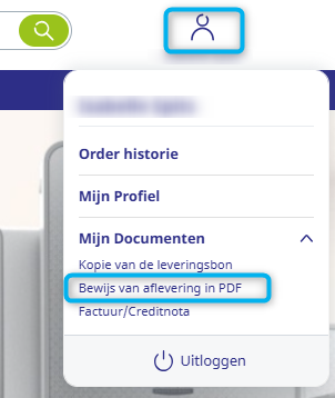 Ga naar Uw login > Mijn Documenten > Bewijs van aflevering in PDF.