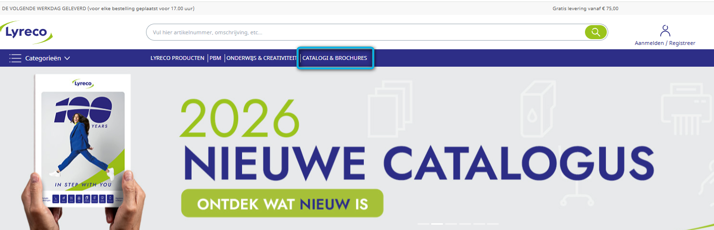 U kunt online kopieën van onze catalogi en folders terugvinden via Catalogi & Brochures of via deze link: https://marketing.lyreco.nl/
