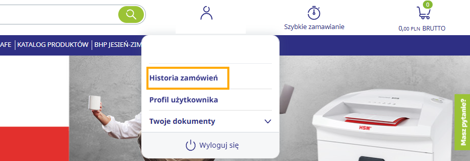 - Zaloguj się do sklepu internetowego za pomocą konta użytkownika i przejdź do profilu > Historia zamówień.
