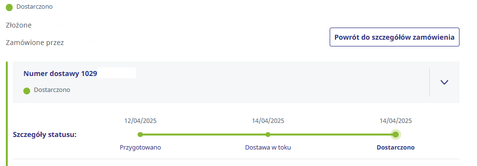 - Pasek "Status dostawy" pokaże, jaki status ma obecnie zamówienie/dostawa