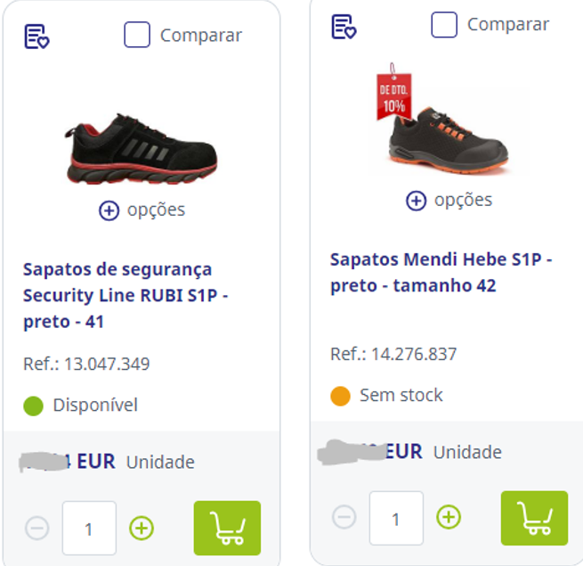 Na sua conta da Webshop, pode verificar facilmente a disponibilidade de stock de cada produto. Essa informação é exibida entre o preço e a opção 'adicionar ao carrinho' na página do produto.
